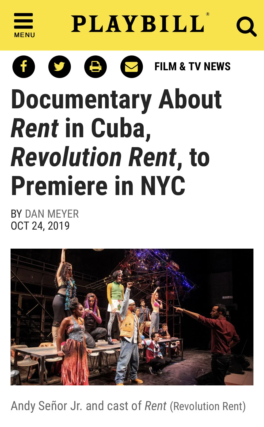 This HBO Original Documentary follows Andy Señor Jr to Cuba, where he is tasked with directing a stage production of the Tony and Pulitzer-winning musical, “Rent,” the country’s first Broadway production in more than 50 years. Returning to his exiled parents’ homeland, Andy embarks on a personal journey, exploring his Cuban heritage and his family’s complex relationship to the country they love. REVOLUTION RENT will be available to stream June 15th 2021 on HBO and HBO MAX, coinciding with the 25th anniversary of the iconic musical’s debut on Broadway.